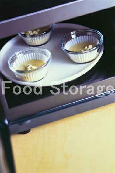 耐熱カップにカップケーキ用の紙型を入れ、1を流し入れて2をのせる。