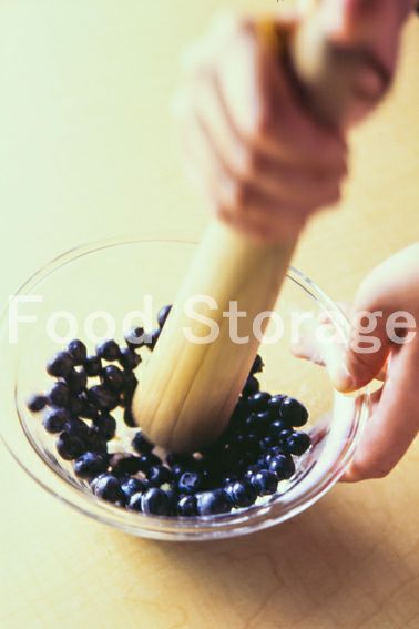 耐熱ボウルにブルーベリーを入れ、すりこぎなどで適当につぶす。