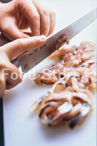 あじはぜいご、頭、内臓を取り除いて三枚おろしにする。 |