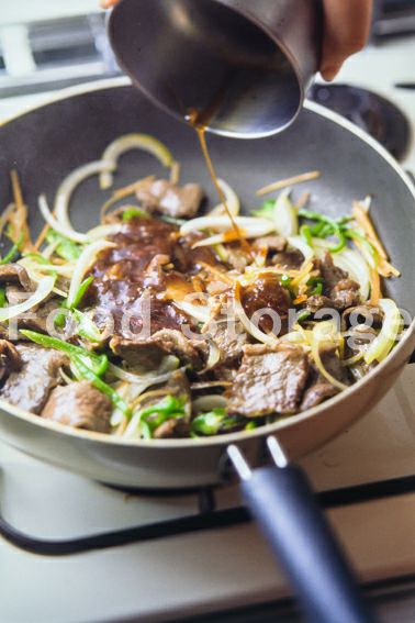 玉ねぎは薄切りに、ピーマン、にんじんは細切りにする。 |