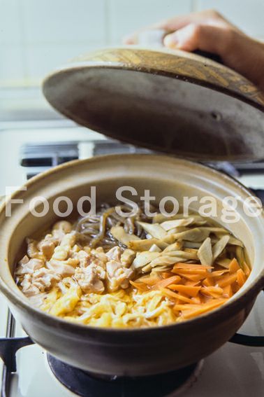 | 釜飯用のお釜がなくても、底が深めの土鍋で、十分釜飯風のおいしいごはんが楽しめます。 |