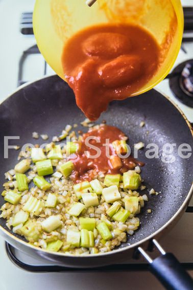 3のフライパンにサラダ油大さじ1を足し、2の玉ねぎ、セロリを炒め、野菜がしんなりしたらaを加えて炒め合わせ、塩、こしょうで味をととのえる。 |