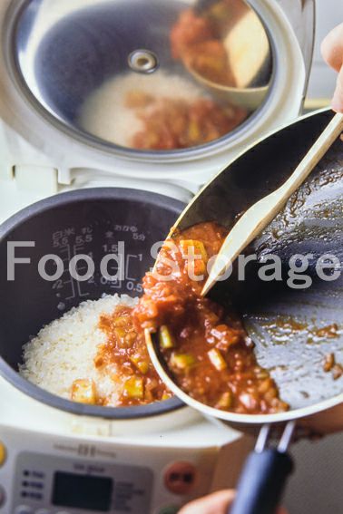 炊飯器に1、4(汁ごと)を入れ、水を加えて炊く。炊き上がったら器に盛り、3の牛肉をのせる。 |