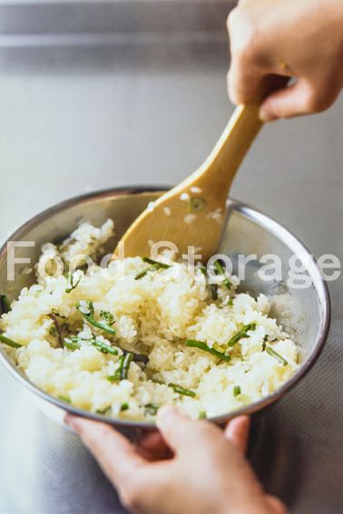 もち米 山菜水煮 a(だし汁 酒 塩)