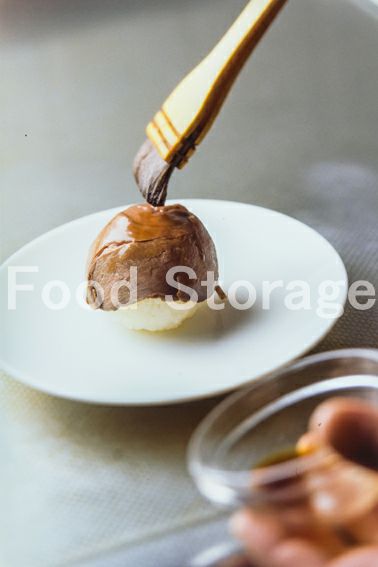 2に1をのせて形をととのえ、しょうゆを塗り、わさびをのせる。 |