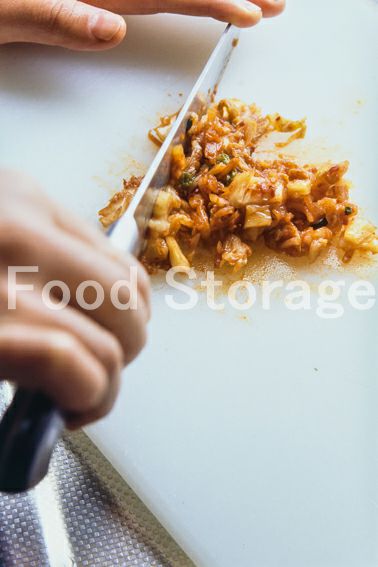 キムチは粗めのみじん切りにし、ナチュラルチーズは5mm角に切る。 |