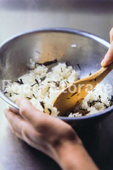 ごはんにひじきの煮ものを加えて混ぜ合わせる。 |
