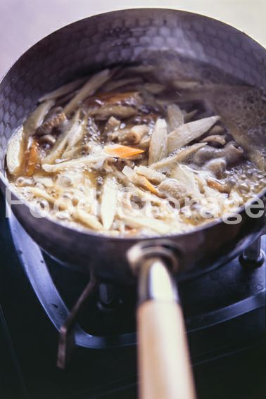 鍋にaを煮立て、2、3のごぼう、にんじんを加えて煮込む。器に盛って3の長ねぎをのせ、七味唐辛子をふりかける。 |