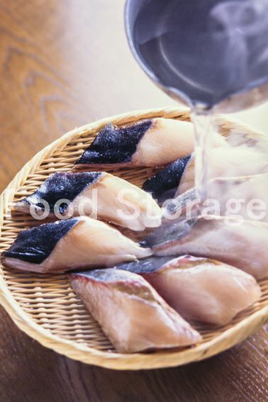 ぶりは半分に切ってザルにのせ、熱湯をかけて臭みを抜く。