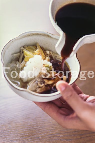 器に取り分けて合わせたaのポン酢しょうゆをかけ、大根おろし、七味唐辛子、ゆずこしょうなどお好みの薬味をかけていただく。 |