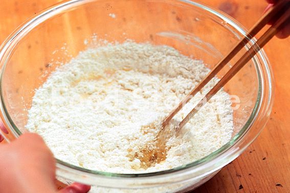 ふるった薄力粉を3に加えて、さっくりと混ぜ合わせる。 |