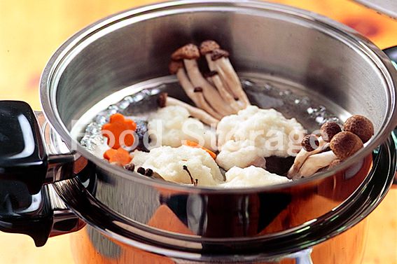 かぶはすりおろしてペーパータオルを敷いたザルにあげ、水けを切る。 しめじは石づきを落として小房に分け、にんじんは皮をむいて5mm幅に切って型で抜く。さやえんどうはすじを取り除き、さっと塩ゆでして斜め半分に切る。 |