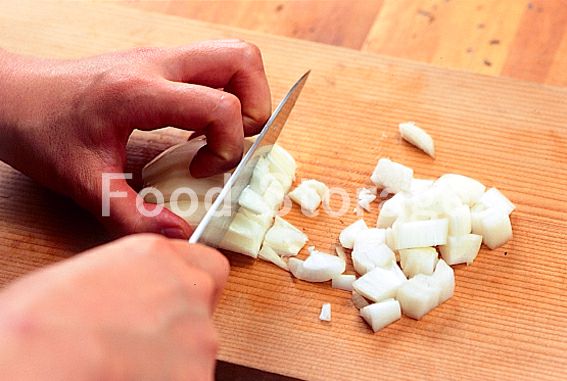 玉ねぎは1cm角に切り、三つ葉は2cm長さに切る。芝えびはさっと洗って水けをよく拭き取る。 |