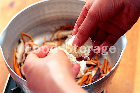 鍋にサラダ油を熱し、2の干ししいたけ、にんじんを炒める。 |