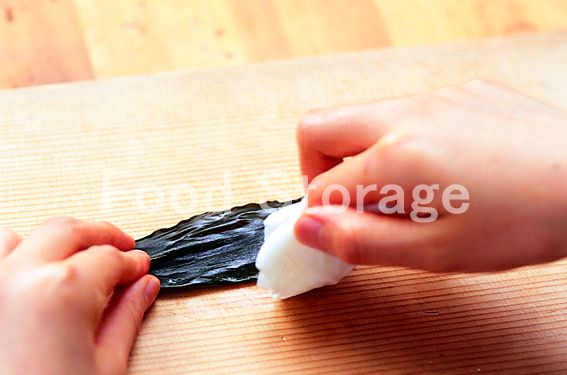 昆布を拭く。昆布はかたく絞ったぬれ布きんで軽く拭く。 |
