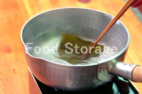昆布を水に浸す。鍋に水、昆布を入れて10分ほどおく。 |
