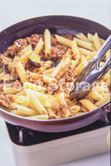 | ミートソースのバリエソースが絡まりやすいペンネを使って、ミートソースをパスタにあえたレシピです。なすとミートソースの相性が抜群! |