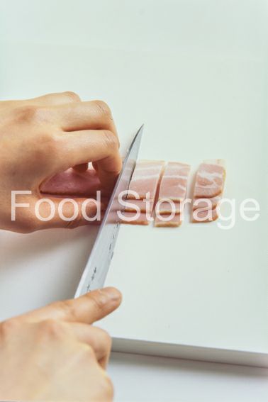 ベーコンは1.5cm幅に切る。