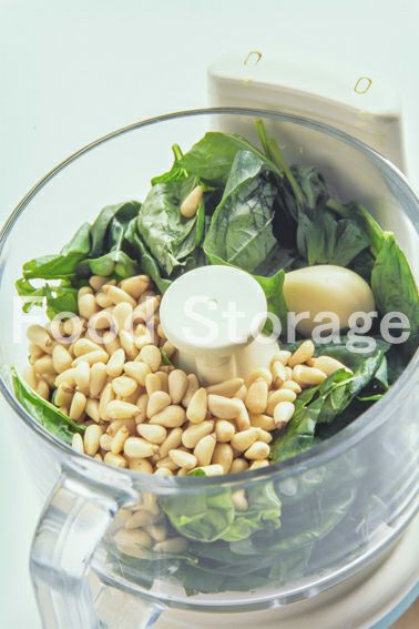バジルの葉 にんにく 松の実 オリーブ油 粉チーズ
