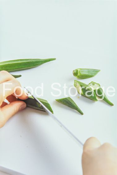 オクラは斜めに3等分に切る。にんにく、しょうが、玉ねぎは、みじん切りにする。