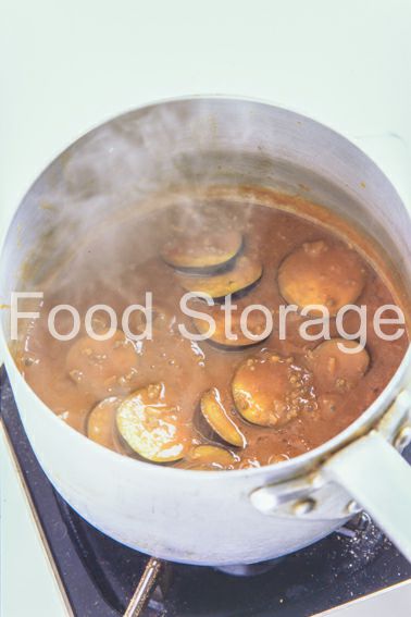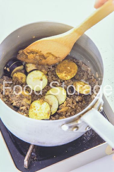 4にカレー粉、ガラムマサラ 水けを切ったなすを加えて炒め合わせる。