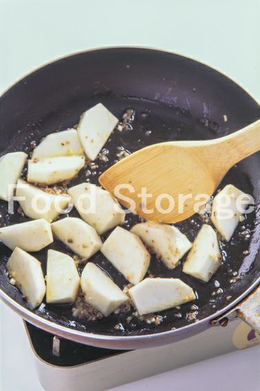 3にかぶの実を加えてさっと炒め合わせる。 |