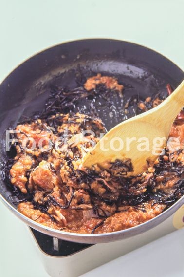 3にひじき、トマトソースを加えてさっと混ぜ合わせて軽く煮る。 |