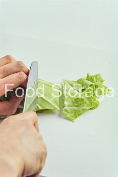 キャベツは約3cm角にざく切りにする。玉ねぎは薄切りにする。にんにくはみじん切りにし、赤唐辛子は種を取り除く。 |