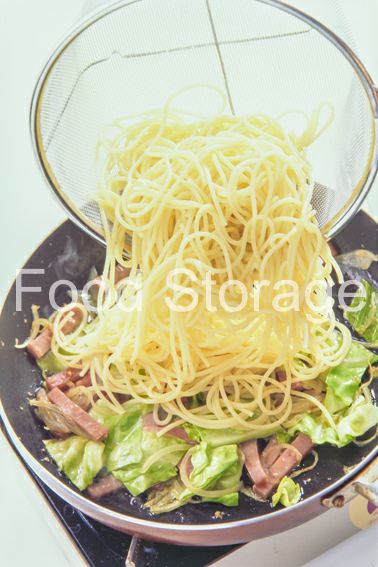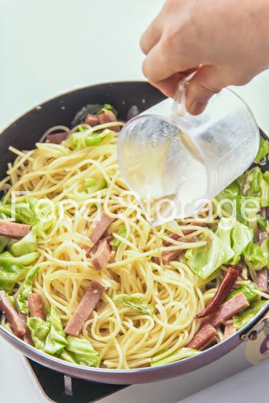 | 肉並みのうまみと食べごたえのある、スパムハムがキャベツと好相性。ボリュームたっぷりのパスタです。 |