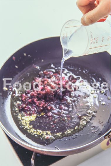 3にしば漬け、パスタのゆで汁(100ml)、薄口しょうゆを加える。 |