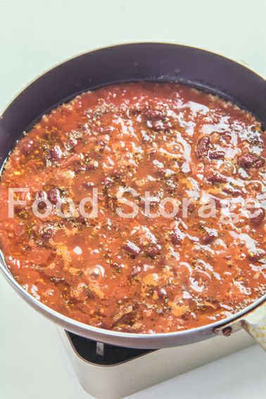 2に汁けをきったキドニー豆、ホールトマト、バジルを加えて少々煮る。 |