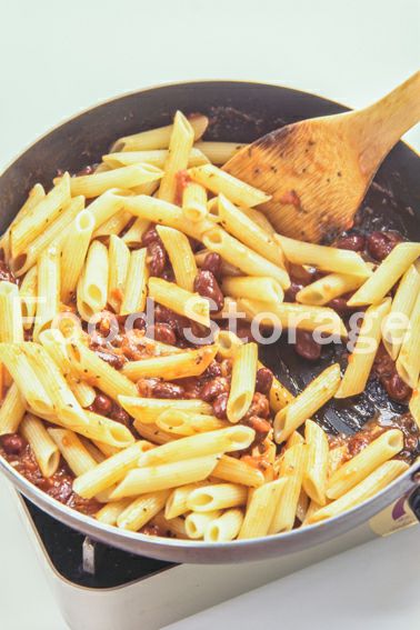 パスタ(ペンネ) キドニー豆(水煮缶) にんにく オリーブ油 ホールトマト水煮(缶詰) バジル(乾燥) 塩 こしょう