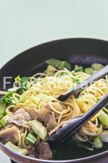 | 豚肉とチンゲン菜のスパゲッティ |