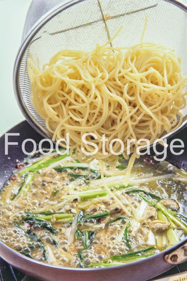 | キッチンにある素材だけでできる、簡単和風パスタはいかが?あさりのうまみと、ねぎの味が効いています。 |