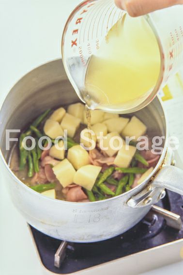 3.の鍋にじゃがいも、さやいんげん、Aを加えて5分ほど煮る。 |