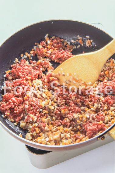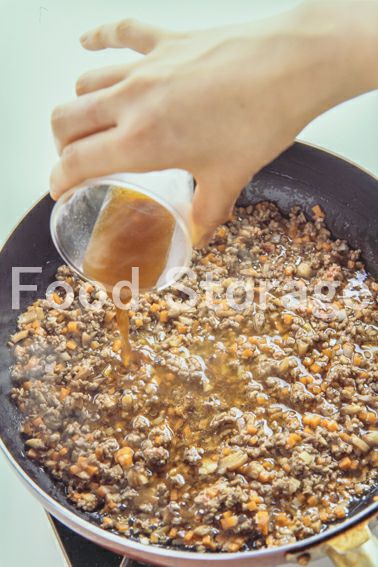 4にひき肉を加えて、肉の色が変わるまで炒め合わせる。 |