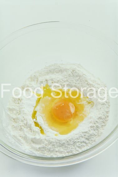ボウルにAを合わせふるい入れ、中心にくぼみをつけて、そこに卵と水、オリーブ油、塩を入れる。 |