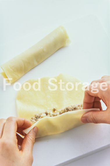 | ラザニアを小さくしたような生地で春巻きのように具材を巻いたり、包んだりしていただくパスタです。 |