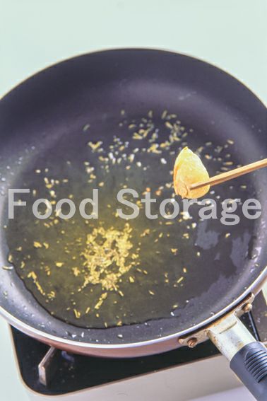 フライパンにオリーブ油、にんにく、セージを入れて弱火にかけ香りが出てきたらにんにくを取り出す。 |