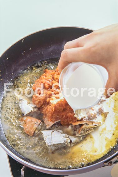 3のフライパンにわたりがにを加えて両面をよく焼く。 |