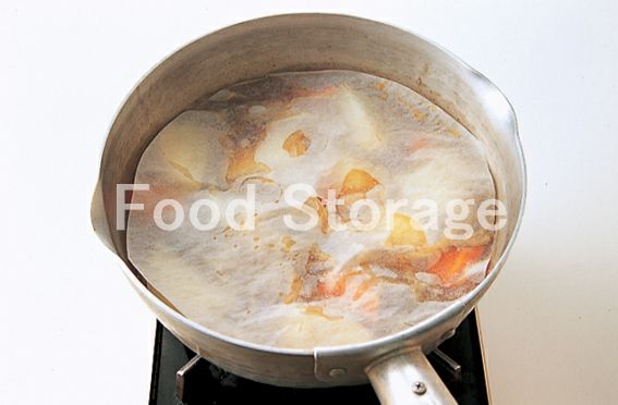 しょうゆを加え、落としぶたをし、煮汁が半分くらいになるまで味をしみ込ませるように煮る。 |