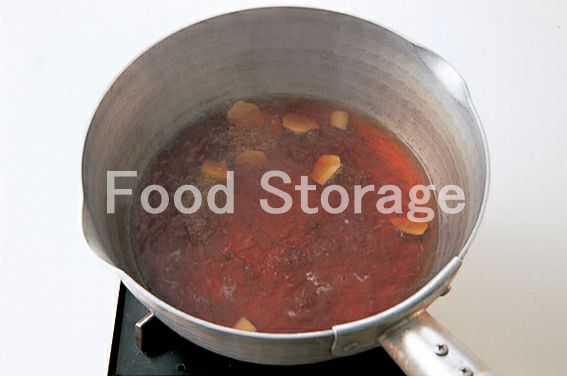鍋に2のしょうが、煮汁の材料をすべて入れて強火にかける。 |