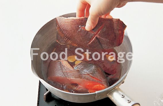 煮汁の材料 砂糖 酒 しょうゆ みりん だし汁(または水) かれい(切り身) しょうが 小松菜