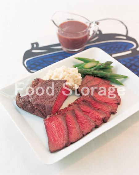 天板から牛肉を取り出し、粗熱が取れたら食べやすい大きさに切り分け、2のグリーンアスパラガス、3を添えて器に盛る。 |