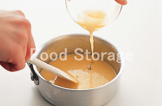 ボウルに卵黄、水を入れて混ぜ、60℃くらいの湯せんにかけてもったりとしてきたら、湯せんからはずし、溶かしバターを少しずつ加えながら混ぜ合わせる。レモン汁と塩、こしょうを加えて混ぜ合わせる。 |