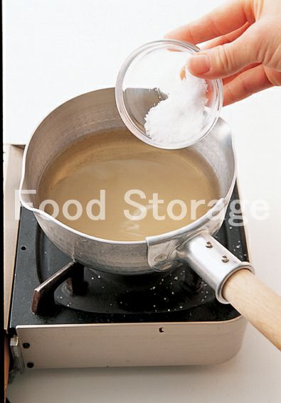 材料が溶けたら、火から下ろして冷まし、冷めたら保存容器に入れる。 保存期間:冷蔵庫で約1週間