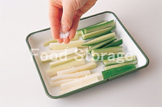 1に塩をまぶしてしばらくおき、水けが出たら拭き取る。