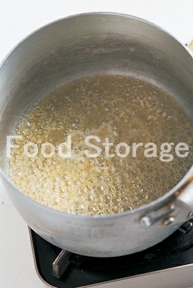 鍋にバター、オリーブ油、にんにくを入れて、弱火にかける。 |