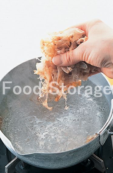 強火にしてしっかりと煮立て、削り節を一度に加える。再び沸き上がったら火を止める。 |