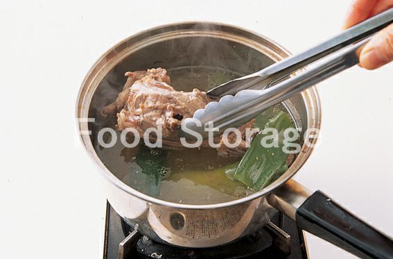 鍋に水、2、長ねぎ、しょうがを入れて強火にかけ、煮立ったら火を弱める。 |